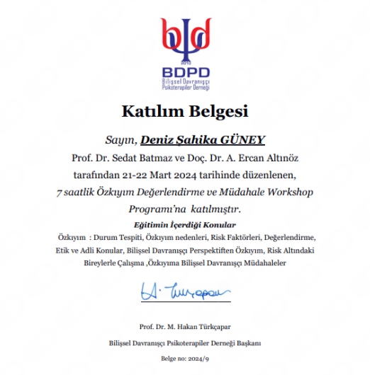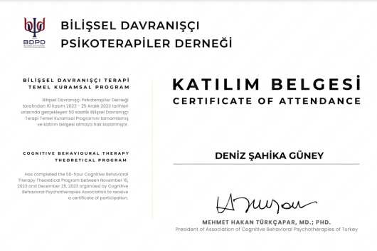 - Bilişsel Davranışçı Terapi Eğitimi - Prof. Dr. M. Hakan Türkçapar (2023)